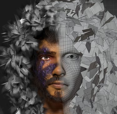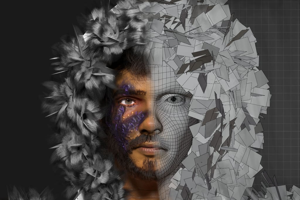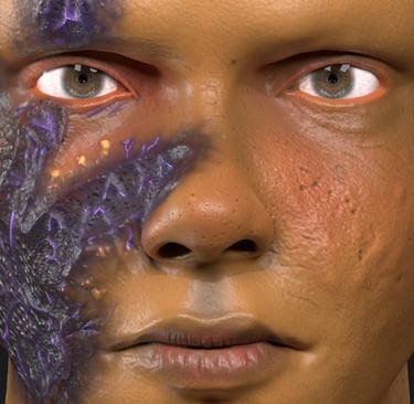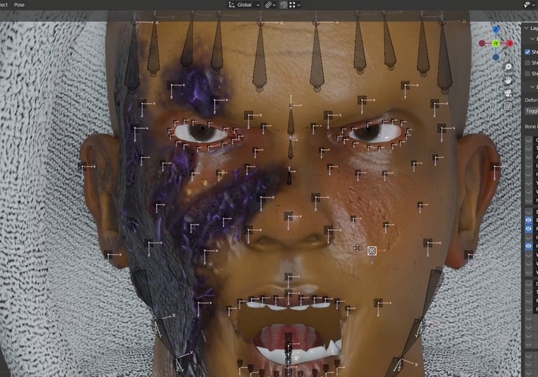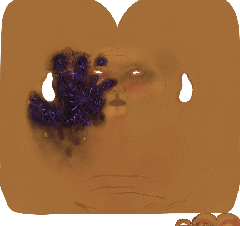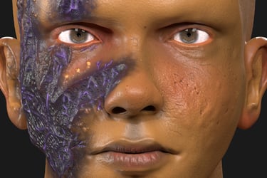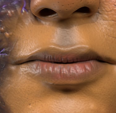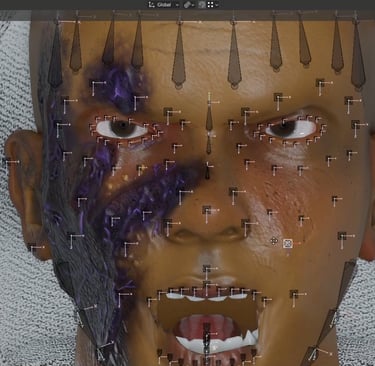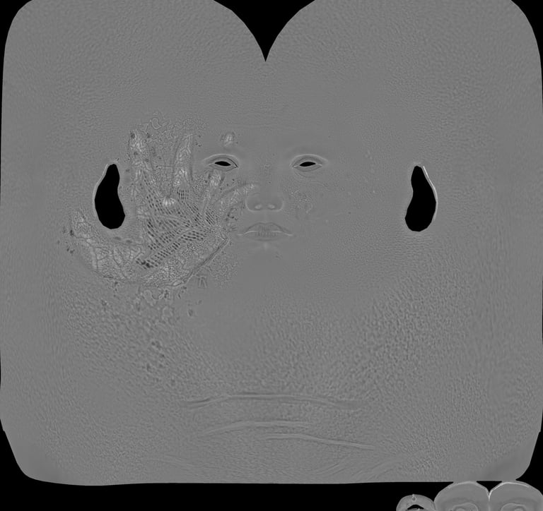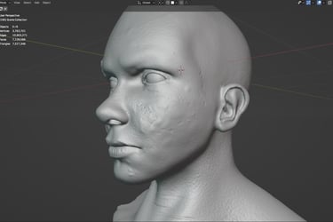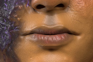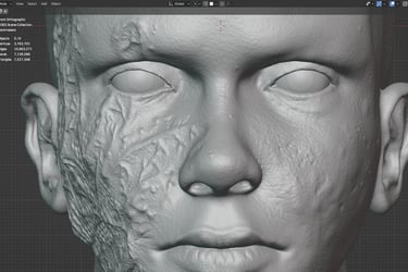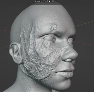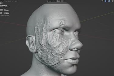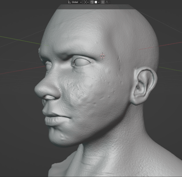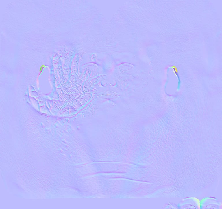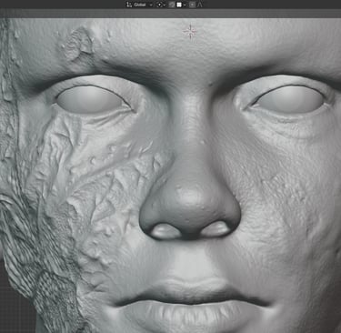The face is also entirely hand scupted and textured as you can see in the timelapse, but the main difference between the face and the body is intention.