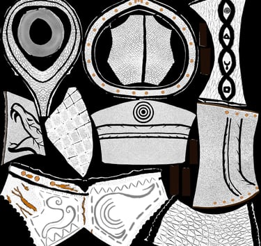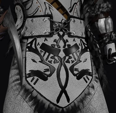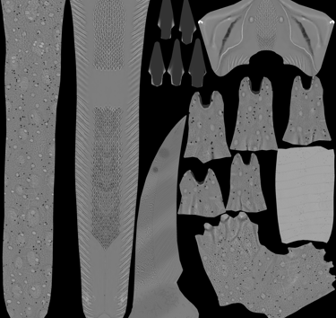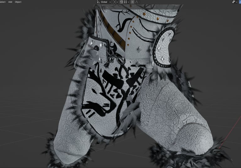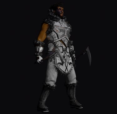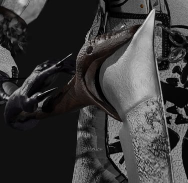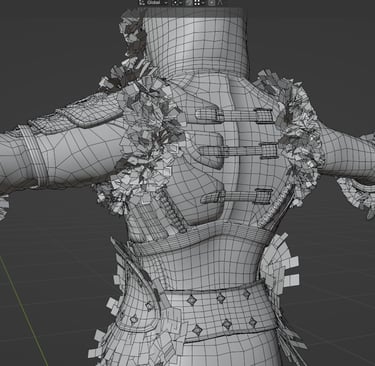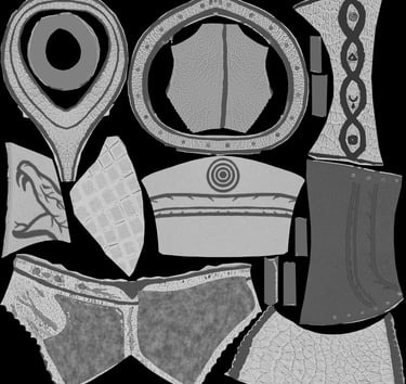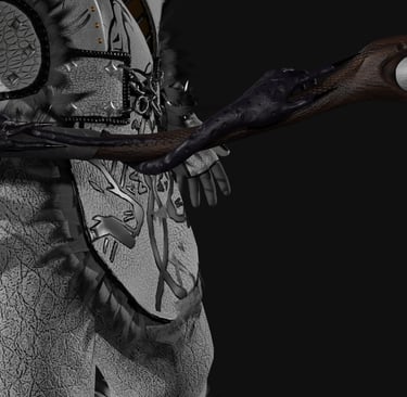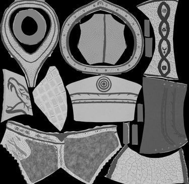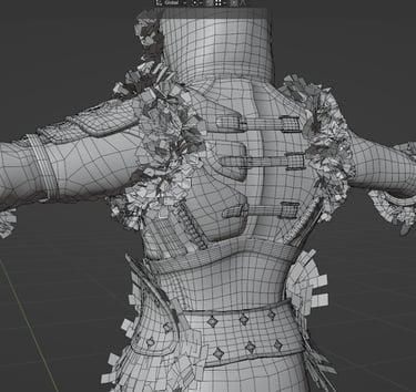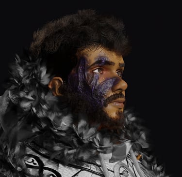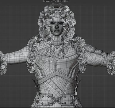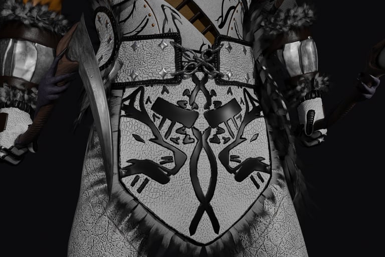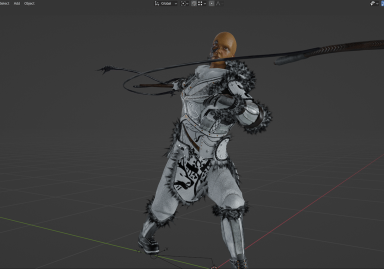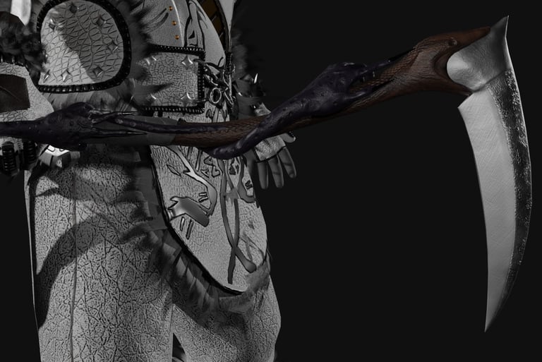 Every piece of cloth, armor, weapon the he carries is hand sculpted and hand textured. Procedural textures have been applied only to metallic parts and some leather pieces.
