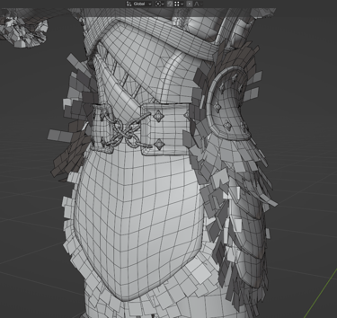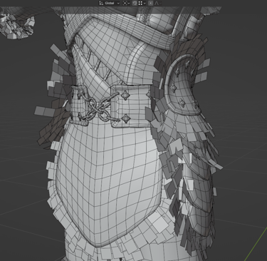 So the i decided that the real fix for this problem is going to be to completely redesign his waist area, create a bigger waist belt that covers a larger area in his abdomen so it does not intersect so easily with other parts of the body.