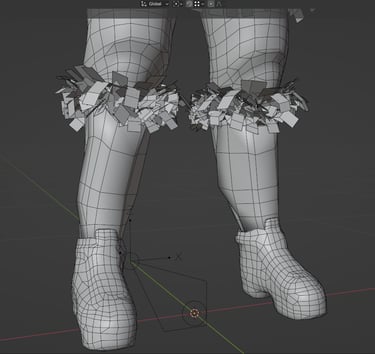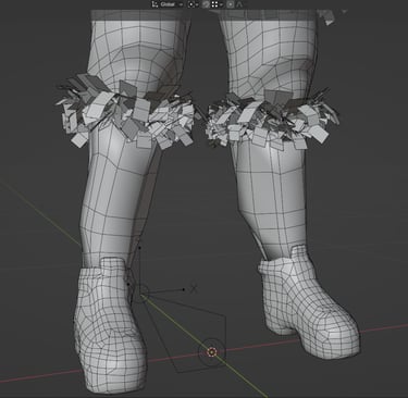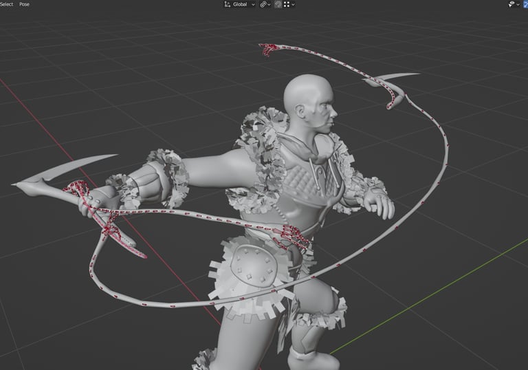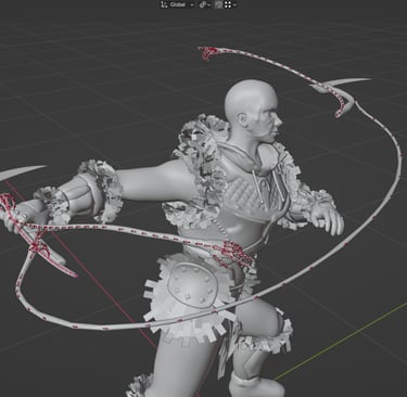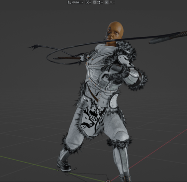 Both the cape and the waist belt easily intersect with the rest of the body when moving, which is a hard problem to fix without adding more bones or complex rigging mechanisms.