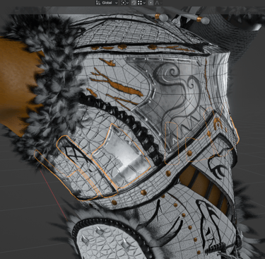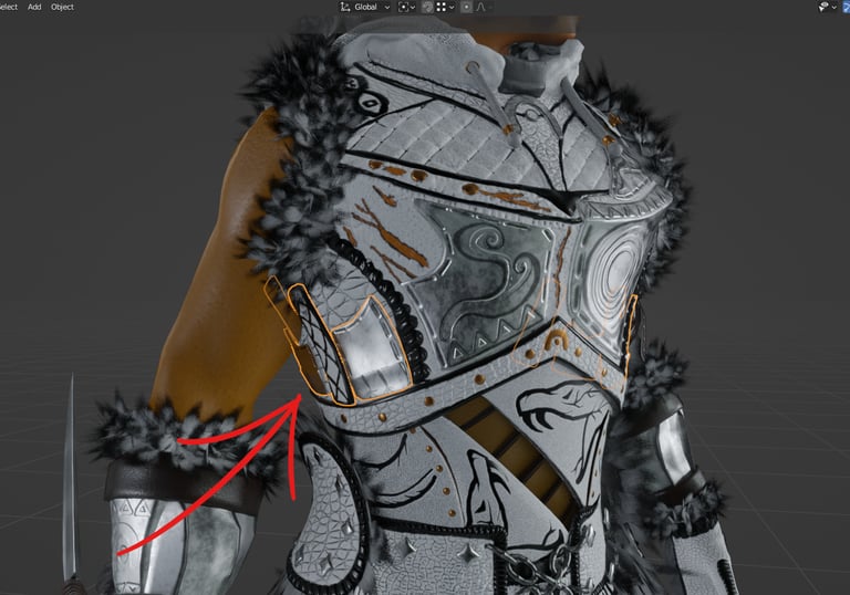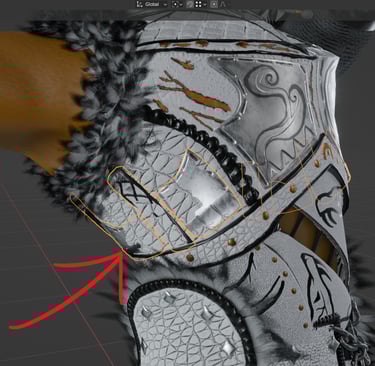 There is nothing technically wrong with the fur around his armor, it's just badly designed.