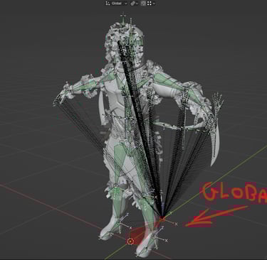 Standing in a T-Pose, all is normal and looks good, but as soon as the torso begins to rotate, all the separated parts will move according to the bones to which their wheight is paired, so esentially, they just start floting...