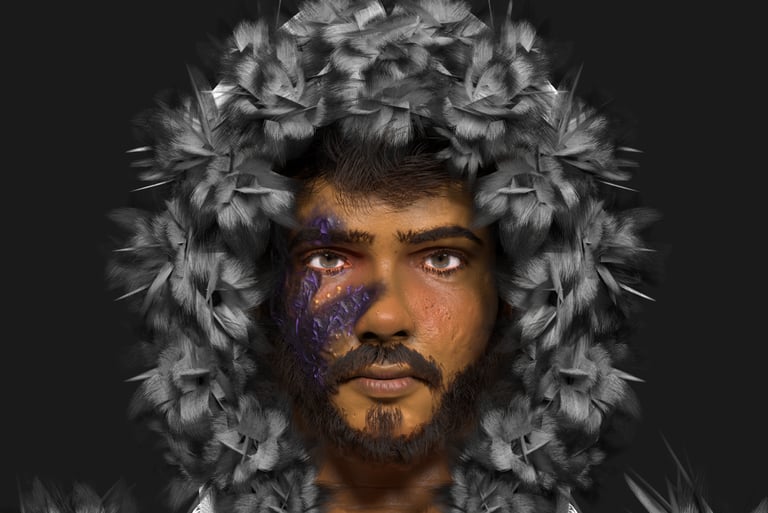 With our main character, the goal was to create a parallel between Semi-Realism a completely stylized artwork.
