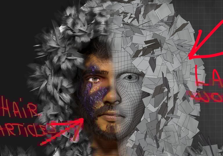 The hair and the beard are made with particles, for demonstration purposes. Not game-compatible.