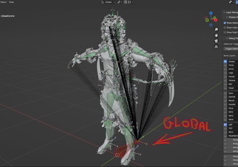 I did not even bother to build an FK mechanism for the arms and legs. For that part of the body, IK feels way more natural in any movement.